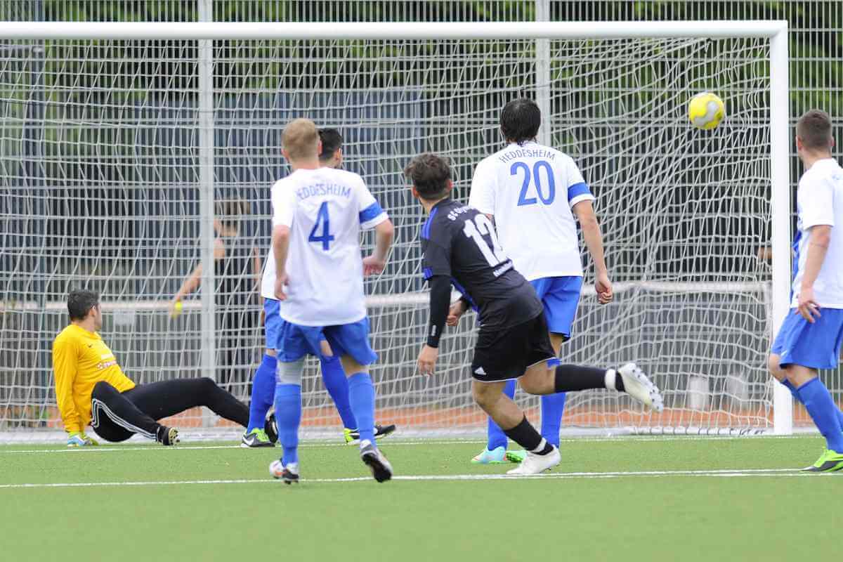 Foto: Auch Handball wurde in Heddesheim gespielt. Nach einer Handballvorlage von Neulußheims Christian Thorn netzte Neulußheims Reuter zum 2:1 Anschlusstreffer ein.