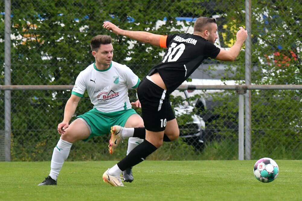 Freude bei Fabian Lorenz, der soeben mit einem Treffer in den Torwinkel das alles entscheidende 0:2 erzielte. Links der Torschütze zum 0:1, Akin Ulusoy. Bild: Siegfried Lörz/Kraichgaufoto