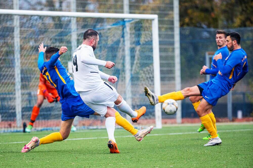 Thorsten Kniehl (weiß) machte ein gutes Spiel. Er traf zum 1:0 und hatte auch danach Chancen auf einen weiteren Treffer. Hier zielt er mit einem Schuss knapp am Torpfosten vorbei. Bild: Marino