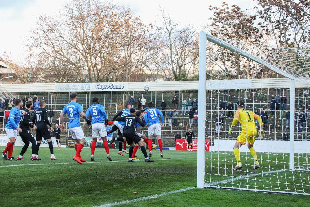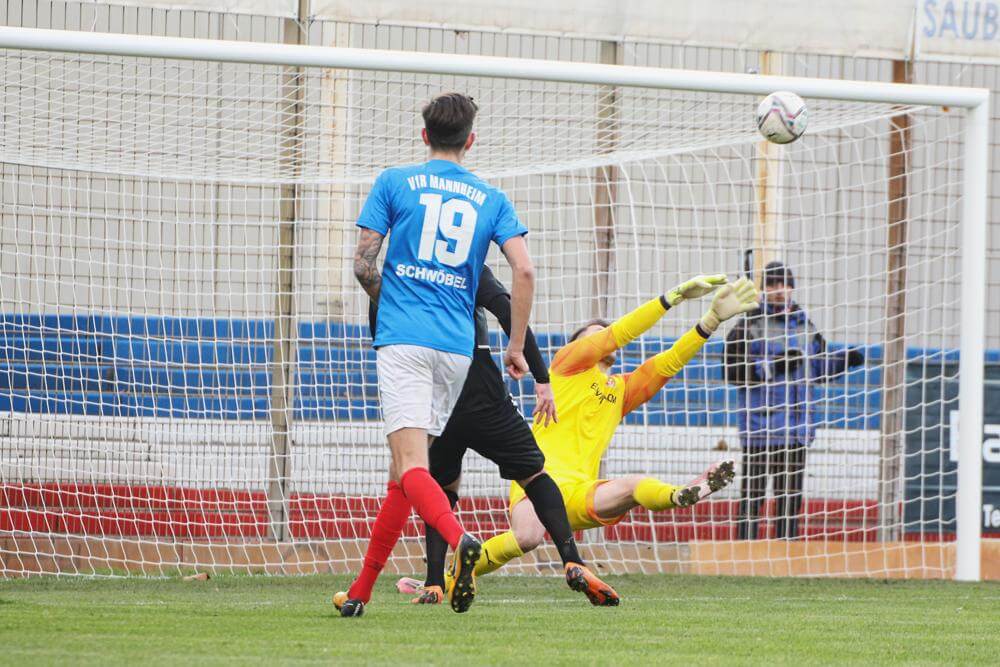 Die Mannheimer jetzt besser im Spiel und die nächste Gelegenheit ergab sich erneut für Koep, der in der 40. Minute im Strafraum eine Hereingabe annahm und aus der Drehung ins kurze Eck schoss (40.), aber Heddesheims Torsteher Dennis Broll wehrte reaktionsschnell ab. Und kurz vor dem Pausenpfiff scheiterte Blerton Muca mit einem direkt ausgeführten Freistoß aus 25 Metern nur knapp – sein Schuss ging haarscharf am Torpfosten vorbei (45.). Das 1:0 zur Pause nicht ganz unverdient für die Rasenspieler.