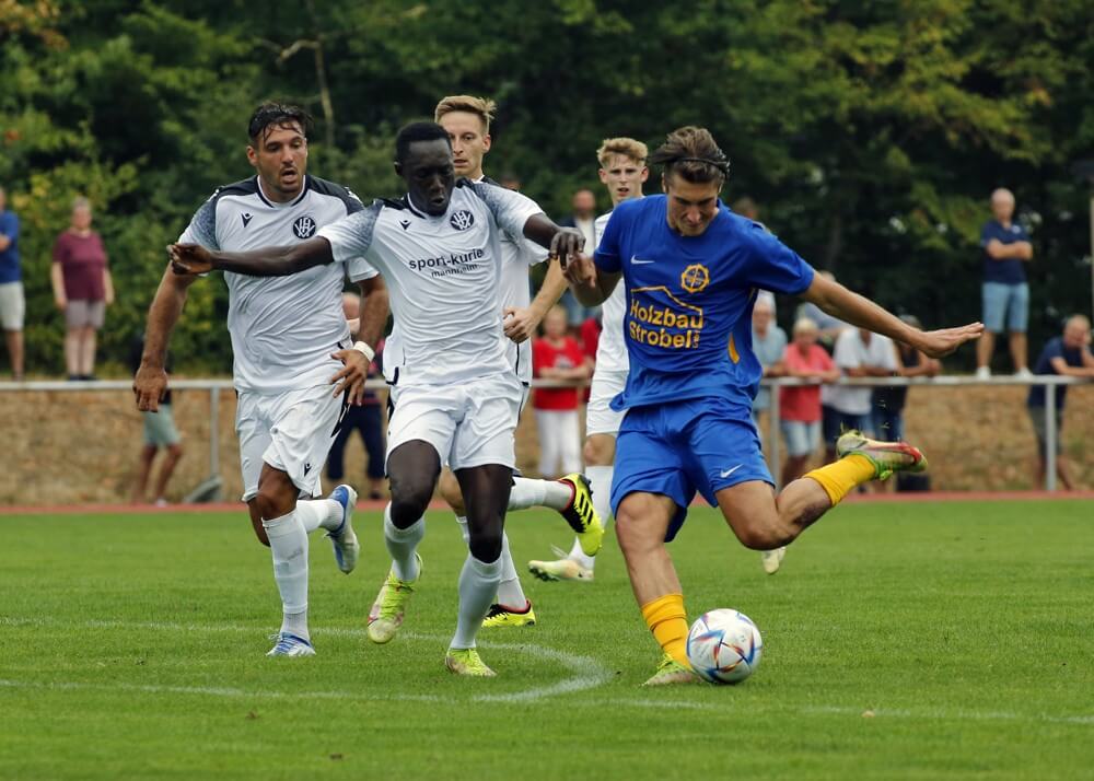 Immer wieder waren es die Fortunen, die durch blitzschnelles Umschaltspiel zu starken Konterchancen kamen. So waren es Luca Sterzing (5./37.) und Enis Baltaci (23.) die zu glasklaren Torchancen kamen, aber entweder am Keeper Marius Brenzinger oder knapp scheiterten. Auf der anderen Seite war es Niklas Schaffer (11.), der mit einem platzierten Flachschuss knapp scheiterte und Tim Buchheister (40.) prüfte den guten und umsichtig mitspielenden FV-Keeper Steven Stattmüller mit einem Schuss aus 16 Metern.