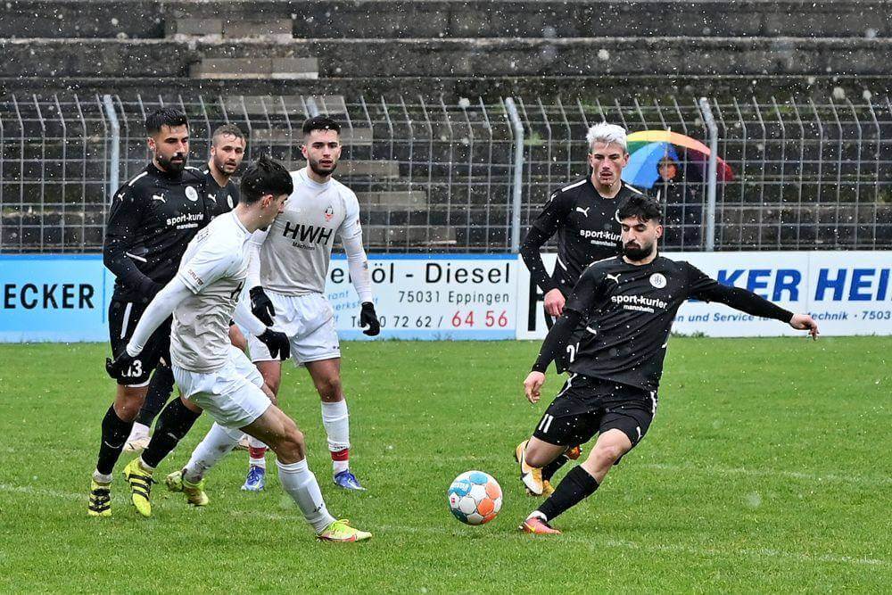 Eppingen in der Anfangsviertelstunde mit starkem Pressing, hoher Laufbereitschaft und Zweikampfstärke, ging nicht unverdient durch Kapitän Valeriij Felk, der eine Hereingabe von Alexander Rudenko mit der Fußspitze ins lange Toreck verlängerte mit 1:0 (8.) in Führung.