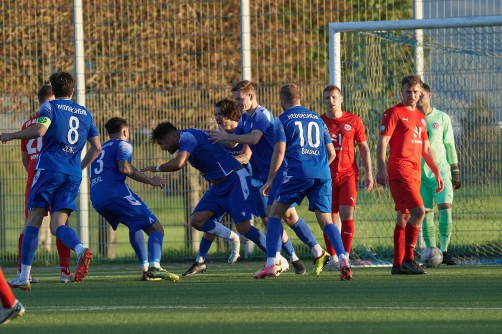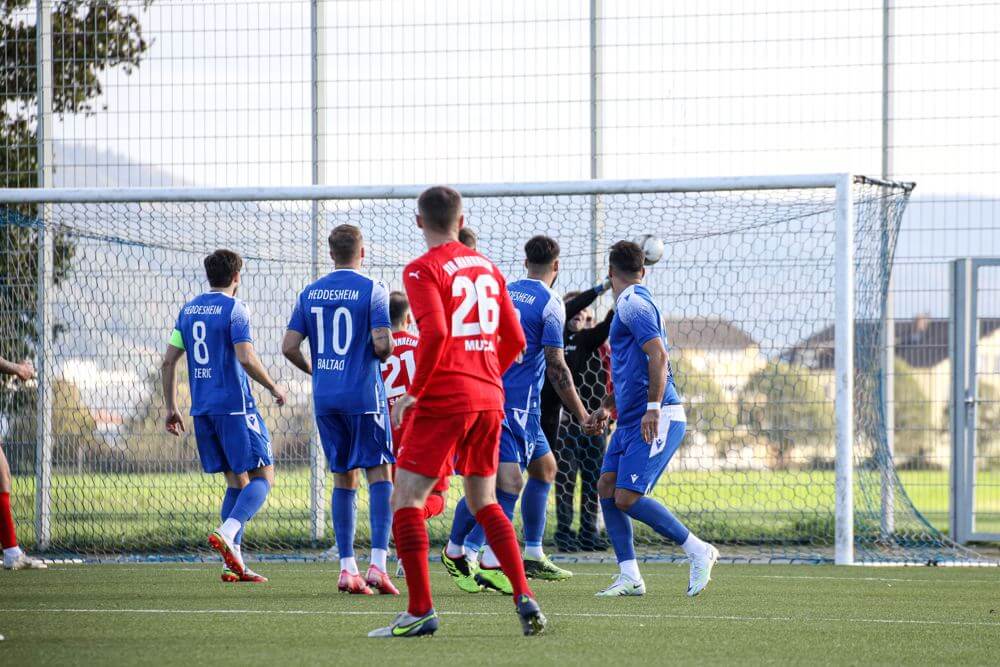 Der eingewechselte Mohamed Amin Kouraji stand nach einem Eckball goldrichtig und spitzelte das Leder über die Torlinie – 1:1 (90.+3). Kurz zuvor hatten die Heddesheimer jubeln dürfen, als nach einem Eckball von Eric Schaaf der aufgerückte Innenverteidiger Georgios Roumeliotis am höchsten aufstieg und zur Heddesheimer 1:0 (87.) Führung einköpfte.
