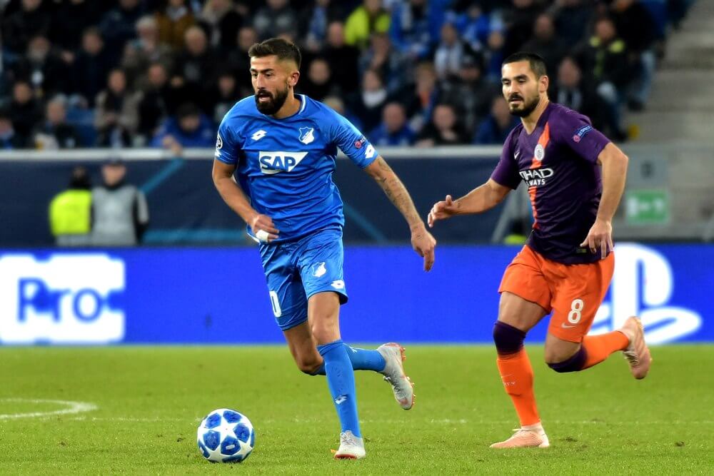 Hoffenheim, 02. Oktober 2018:CL – 18/19 – TSG 1899 Hoffenheim vs. Manchester Cityv. li. im Zweikampf Kerem Demirbay (Hoffenheim) und Ilkay Gündogan (Manchester-City). Bild: Lörz