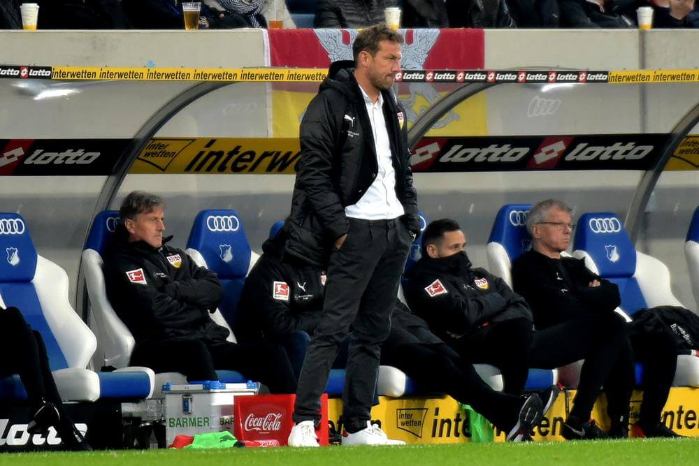 VfB-Coach Weinzierl und Co. meit betretenen Mienen. Bild: Siegfried Lörz