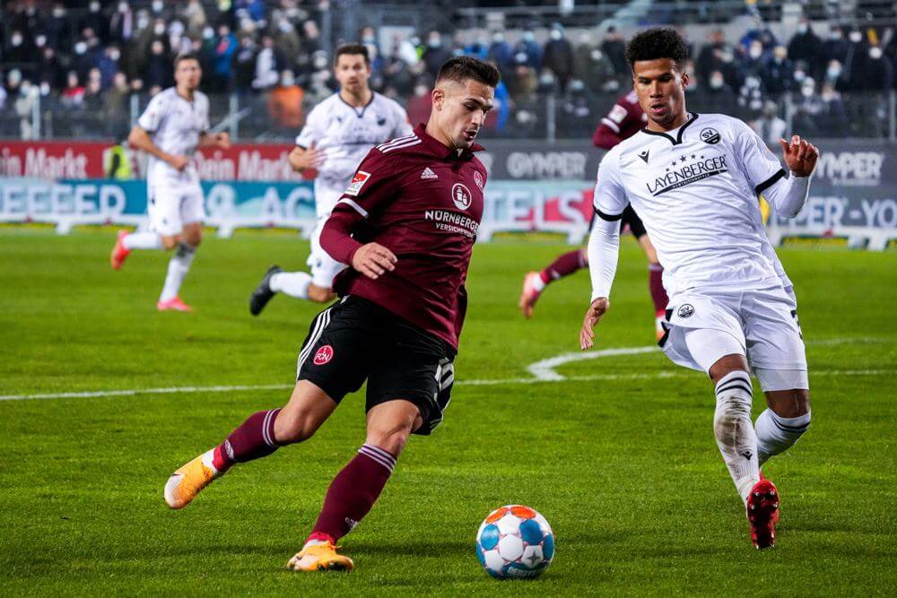 Die Schwarz-Weißen verteidigen konzentriert, verschieben konsequent und lassen zunächst nur einige Eckbälle und Fernschüsse des FCN zu. Die Nürnberger haben zwar mehr Ballbesitz, kommen aber bis zur Pause nicht zwingend zum Abschluss. Anders der SVS, bei dem Janik Bachmann nach Pass von der rechten Seite von Testroet die nächste große Gelegenheit hat, aber in FCN-Keeper Mathenia seinen Meister findet (15.).
