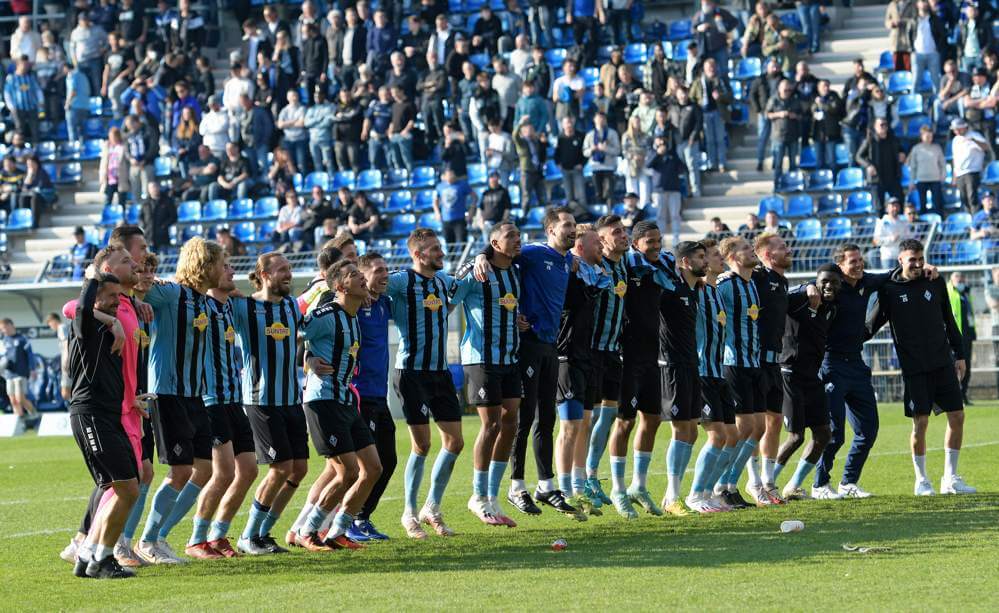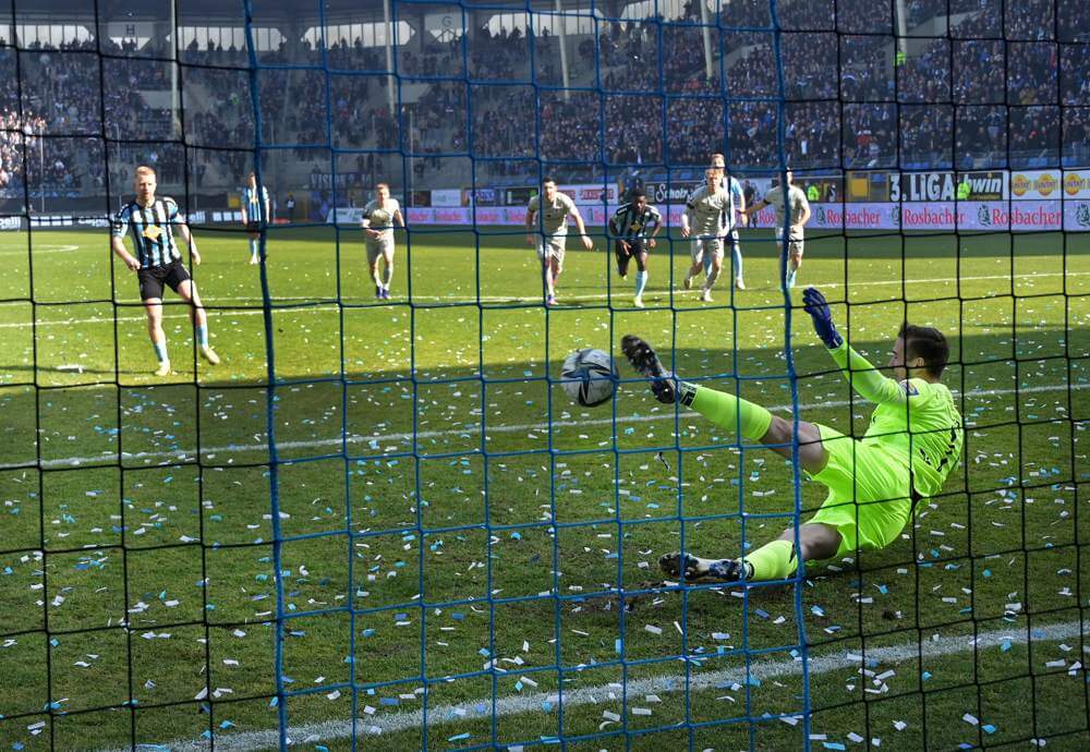 Beim 3:0 (1:0) Sieg über den Mitaufstiegsaspiranten TSV 1860 München erzielten vor 11.750 Zuschauern Marcel Costly (3.), Joseph Boyamba (66./Handelfmeter) und Pascal Sohm (90.) die Treffer für die Elf von Trainer Patrick Glöckner.