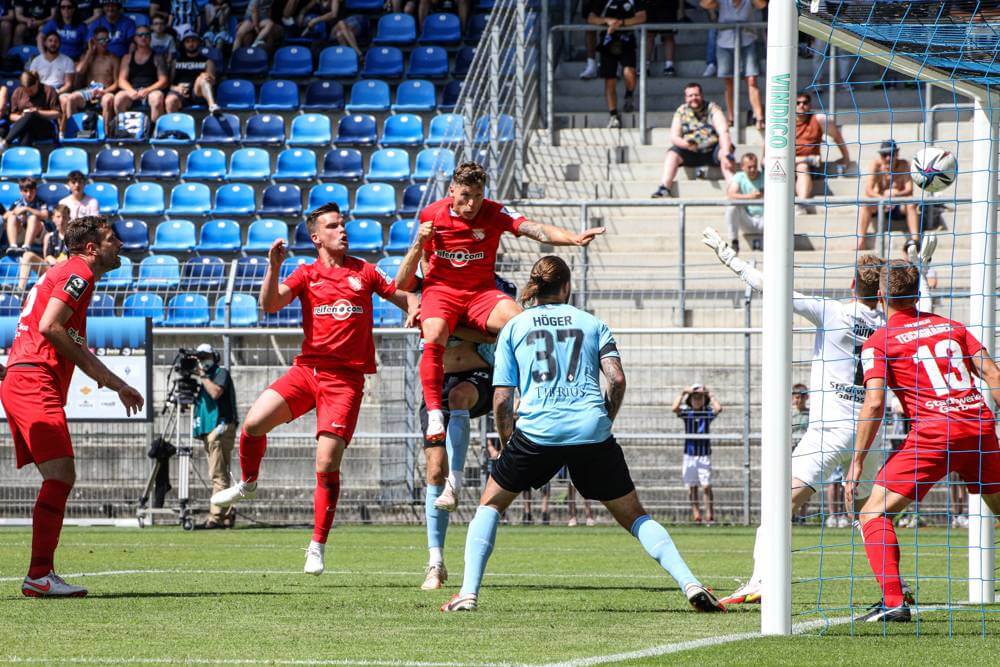 Beim 4:0 profitierte Dominik Kother von einem starken Querpass von Schnatterer. Die KSC-Leihgabe konnte sich auf Höhe des Elfmeterpunkts die Ecke aussuchen (57.). Der eingewechselte Pascal Sohm zeigte 4 Minuten später, dass er mit ganz viel Killerinstinkt ausgestattet ist. Nach einer Ecke und kurzer Verwirrung im Strafraum des TSV sprang er zum Kopfball hoch und platzierte den Ball unhaltbar im Winkel.