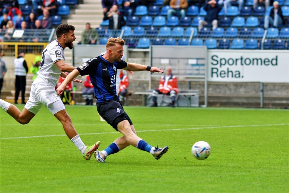 Glück hatten die Blauschwarzen aber in der 43. Spielminute, als ein Freistoß genau auf dem Kopf von Marvin Cuni landete, der ihn aus kurzer Distanz direkt an den Pfosten platzierte.